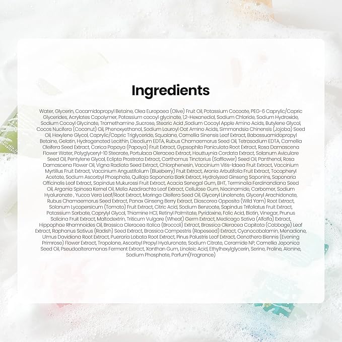 - SKIN-LOVING INGREDIENTS. Fortified with an encapsulated Multivitamin Complex, this hydrating face wash delivers 300 times the concentration of 12 Vitamins. Herbal Tea soothes and calms, 5 Berry Seed Oil hydrates, and Niacinamide refines texture for a refreshed, renewed appearance.