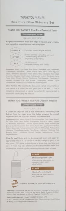 - [RICE PURE ROUTINE] Exclusive Korean Rice Extract made by THANKYOU FARMER - We have worked with local farmers to consistently harvest high-quality rice for making Rice Extract. Rice grown in 100% clean, pollution-free area. After harvesting, we extract active ingredients using low-temperature technology that does not destroy the rice's beneficial nutrients.