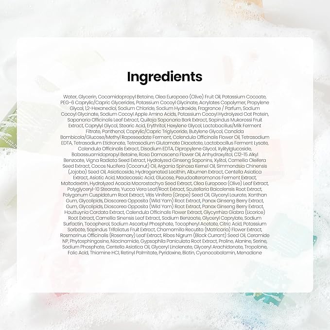 - SKIN-LOVING INGREDIENTS. Fortified with 9 Plant Oils and 18 Plant Extracts, this hydrating face wash offers deep nourishment. Panthenol reinforces hydration, while botanical surfactants like Soapwort, Soapbark, and Soapberry create a luxurious lather without stripping the skin.