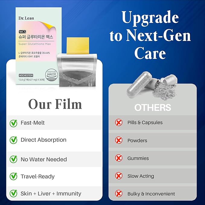 Dr. Lean Super Glutathione Max – 427mg High-Potency Strips with Milk Thistle, Collagen & Hyaluronic Acid | Fast-Melt ODF, Antioxidant, Skin & Liver Support, K-Beauty, Made in Korea (3 Packs)
